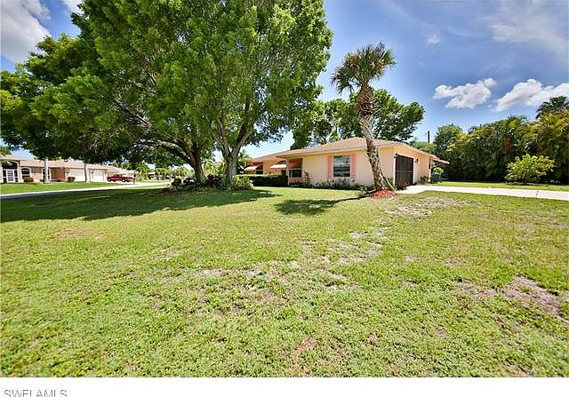 Lovely home on large corner lot with side access garage located in a great location across from gulf access homes. Well maintained with more square feet of living area then is listed on the tax data. The living area under a.c. expands to a Florida room with another approx. 384 sq. ft. newer wood look flooring. Roof 2010, A.C. 2010, re-pipe 1998, Flat roof redone 2011. Over sized lot and garage. Large screened in lanai and plenty of space to built your pool. Easy access to all major roadways, restaurants, shopping, schools, churches, the yacht club and all the amenities that you may want while living in SW Florida. Don't wait, make your appointment to view this property. Seller will entertain reasonable offers. All assessments are paid.