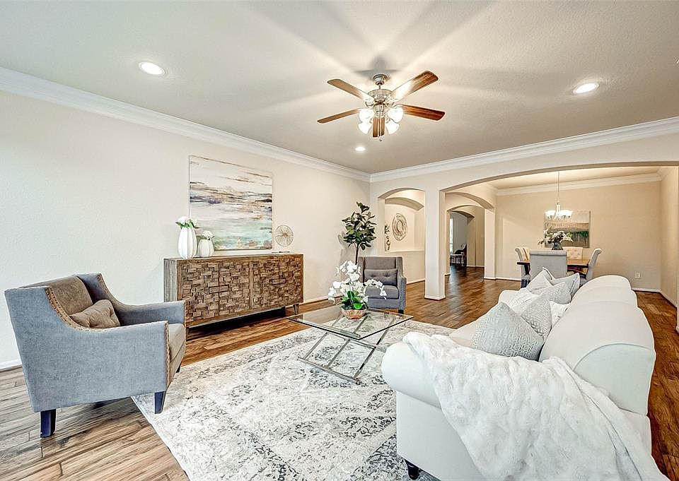 With over 4000 sf this beautiful two story home has room for everybody! Featuring a front balcony, 5 bedrooms, 3 1/2 baths, MEDIA room, GAME room, FAMILY room, STUDY, formal DINING room, AND a FLEX room. Primary bedroom on 1st floor has a double closet and a JETTED TUB! This fabulous home is MOVE IN READY!!! Conveniently located with a short walk to the neighborhood pool, splash pad and playground.