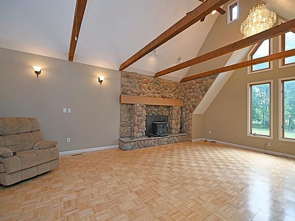 Large 4/5 bedroom home on over 10 acres! Nearly 3000 sq ft with additional basement to finish off if needed. 1st floor features a main bedroom with ensuite bath, dining room, family room with vaulted ceilings and additional 1/2 bath. 2nd floor has 3 additional bedrooms plus massive bonus/rec room or make it a 5th bedroom! Cozy fireplace, dual AC units, gorgeous tree lined level lot. A few updates and lots of possibilities and space to make this your dream come true property/farm!