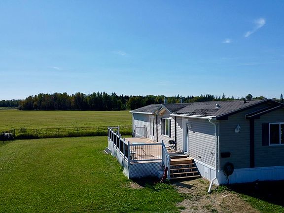 Welcome to this affordable acreage featuring a 2006 modular home with a spacious walk-out deck, double detached garage, and a fully fenced yard with black chainlink and gate. Perfectly located just minutes from Alberta Beach and Hwy 633, you’ll enjoy both convenience and access to endless recreation. Spend your summers fishing, boating, or soaking up the sun, and your winters snowmobiling, cross-country skiing, and more—all right at your doorstep. Inside, this home offers 3 bedrooms, including a primary suite with an ensuite and relaxing soaker tub. The open-concept kitchen and living room provide the ideal space for family and entertaining, with patio doors leading to your large deck. A second bathroom is thoughtfully located near the additional bedrooms. This property is move-in ready and waiting for you to start enjoying the easy acreage lifestyle!