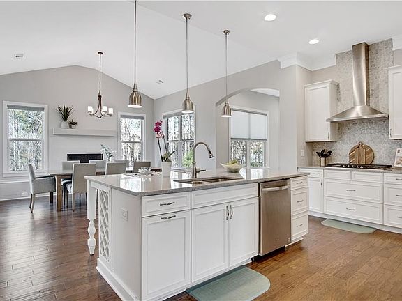 • Kitchen Features: Breakfast Bar, Eat-in Kitchen, View to Family Room, Stone Counters, Kitchen Island, Pantry Walk-In, Keeping Room, Cabinets White, Wine Rack