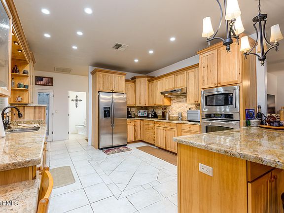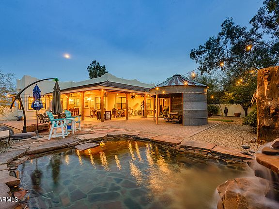 This Horse Property in Vista Royale is a homeowner's dream. Situated at the end of a cul de sac, the paved road provides easy access to the property. Boasts an ARENA and ample space for your horses and recreational vehicles! The 2628 sq ft home features an open floorplan with three bedrooms & two & 1/2 The backyard is perfect for outdoor entertainment, complete with a large wrap-around covered patio, a custom entertainment silo, and a massive water feature. The horse facilities are top-notch, featuring an Arena, three-stall mare motel with automatic waterers and lights. This area also includes hay storage, and a large turn out. Recent upgrades include; a partially remodeled kitchen in 2019, exterior paint and roof coating in 2020, a new A/C unit and a water filtration system added in 2021.