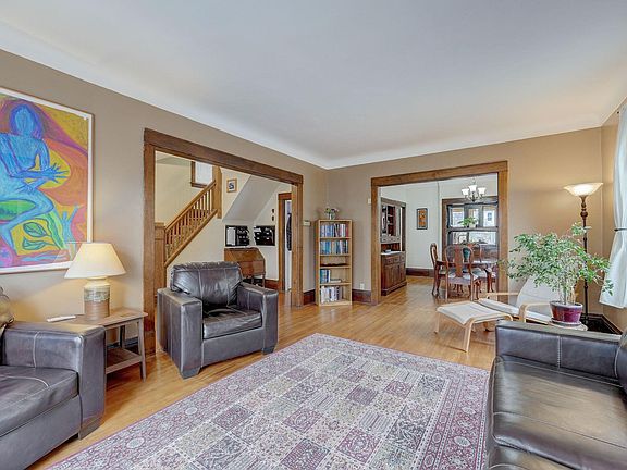 This charming home, owned by the same family for 28 years, seamlessly blends original woodwork with modern upgrades. Nestled just four houses from Powderhorn Park, it sits on a 50-foot-wide lot. Inside, the hardwood floors, a built-in buffet, high ceilings, and leaded/stained glass windows exude timeless appeal. Modern amenities include solar panels, mini-split air conditioning units, and a two-story addition with a family room and spacious primary bedroom above with a large closet. The upper level includes the three bedrooms and an updated full bathroom. You will appreciate the new windows that tilt in for easy cleaning, newer roof (2018), maintenance free siding, new refrigerator, and new stove. Outside, there’s a new garage (2023), driveway, and large patio for gatherings. With 2132 sq ft above ground and the potential to finish the basement, this home provides many “wants and needs.” Look online for the 3D Virtual Tour-see it soon!