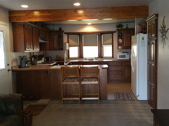 ~ Cabin like feel in this cozy 3 bedroom, 1.75 bath home! Dream Kitchen is open to living room with an eating bar and slider to the deck. Double car carport is set up for RV loading. Backyard is very private with an open patio, deck, workshop, sprinkler system, garden area, and trees.