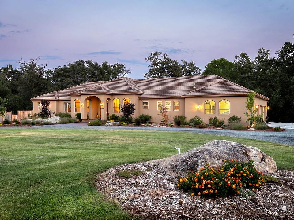Tucked back off the street is this gorgeous mediterranean type home. Guest home has been completely rehabbed. Main house sits on a sloPed lot with a walk out downstairs, which has a drive way up to a sliding glass door which makes it ideal for a Mother-in-law quarters or rental. Upstairs is 3833 square feet and downstairs is 1833 square feet.lovely views of the surrounding area off the covered veranda upstairs. There is a large storage area under the house that would make a super wine storage area. The quest house is really charming, even has a separate fenced yard. There is another building on the property that was once a commercial building and has a large American flag on the garage door, gives the feeling of Loomis history. No HOAs and very close to freeway access and Parks and the village of Loomis. Located in the Loomis School Districts. Covered decks are 329 sq.ft. and garage is 1248 aq.ft. Basement area is complete with a second Master bedroom and bath. Just needs a new family.
