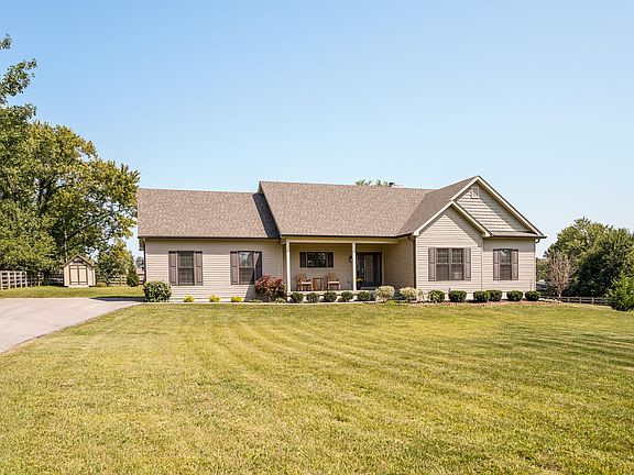 Stunning Quality-built Ranch located in the Heart Of Oldham County- Featuring Large Covered Front Porch w/ Glass Entry Door into Foyer w/ Aged Wood Finished Floors, Vaulted Great Room, Wood Burning Fplc. w/ Mantel, Custom Built-ins, Opens to Large Fully- Equipped Kitchen w/ Stainless Appliances, Granite Counter tops, Large Center Island, Open Dining Area. Convenient Mud Rm/ Laundry Area Off Kitchen & Garage. Secluded Owners Suite w/ Large Walk-in Closet, Private Bath Including Relaxing Whirlpool Tub, Separate Shower, Double Sink Vanity w/ Granite Top, and Custom Tile work in both bathrooms. Lower Level is framed & plumbed for 3rd Full Bath, Room w/ Closet and so much more space waiting for Finishing. Outside Features Large Private Patio, Separate Storage Building, 4- board split rail fencing on both sides, plus 2 1/2-car Garage. This property has custom Wood Plantation Blinds Throughout, Is Energy Efficient w/ Low Utility Bills and offers the remainder of Basement Warranty! Home is in immaculate condition!