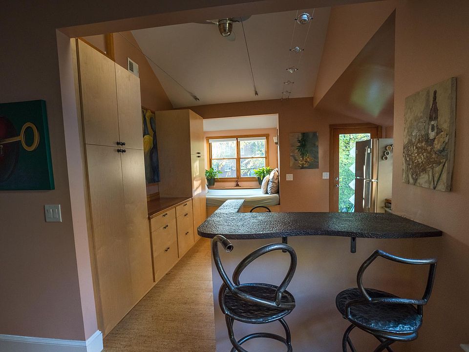Adorable cottage home in hip Mount Rainier, Maryland, will rent for a 2 year lease. Mount Rainier is just northeast of Brookland, DC. This home has been fully renovated and features all non-toxic renovation materials, energy efficient appliances, reclaimed materials and a roomy open floor plan. The home is 2 bedrooms and 1 bath, with a cozy bed bay in the kitchen for reading, relaxing and for extra sleeping space for guests. The home is set on a large lot with a native pollinator garden and roomy storage shed, and sits in near proximity to the Mount Rainier bike co-op, Glut natural food store, Joe's Movement Emporium for yoga, dance and theater, and just two blocks from quaint and comfy downtown Mount Rainier--one of the coolest neighborhoods in the Washington DC metro area. This neighborhood has one of the highest densities of artists in the region, convenient access to transit and the Anacostia and MetBranch bike trails, an easy metro ride to two airports and just a few miles from both University of Maryland and Catholic University. Rental includes off-street parking. Lease is for 2 years with option to renew for a third. NOTE: we will consider small pets, with an additional monthly pet fee and deposit ( $50/month fee and $500 deposit). Only well behaved small dogs and indoor cats. This is a 2 year rental with option for third year. All utilities are renter's responsibility. Small pets will be considered, with $50/month pet fee and $500 added to the deposit fee.