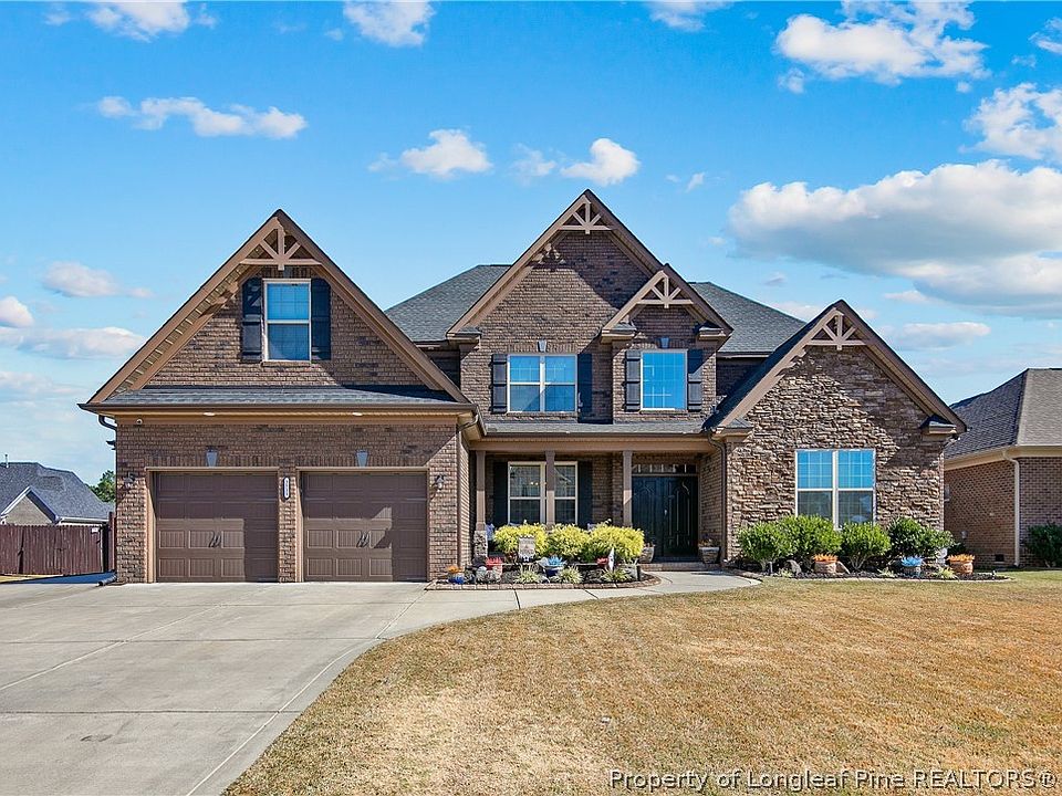 Beautifully maintained home in sought-after Legacy at Traemoor features 5 bedrooms, 4 full baths and a THREE CAR GARAGE (3rd garage has custom 8-foot door). The elegant interior has an open floor plan with cathedral ceilings and hardwood floors downstairs. The spacious kitchen is a gourmet's dream, with granite countertops, stainless appliances, double convection ovens, gas cooktop, a unique induction stove in the spacious island and TWO pantries! The downstairs master suite is carpeted and features a large bathroom with tiled flooring, granite vanity, double sinks, garden tub, separate shower and a large walk-in closet. Upstairs bedrooms are carpeted with plenty of closet space. Outside is a covered patio, a 10x14 storage shed, custom gable lighting, custom gutters, 12 exterior integrated security cameras and privacy fencing. This is truly a dream home, not to be missed!
