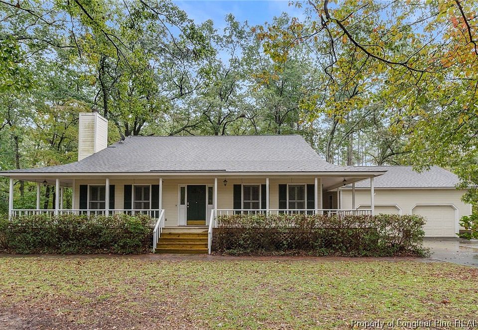 Welcome home and enjoy peace and quiet country living on this nearly 2-acre lot. This farmhouse-style home with a wrap-around porch provides you with views unimaginable! As you step inside this 4 bedroom, 2.5 bath home you are greeted with hardwood flooring throughout& a large living room area with vaulted ceilings, leading you to an open kitchen & sitting area. The kitchen is beautifully updated with butcher block countertops, a range hood, stainless steel appliances, gorgeous tile backsplash, & a built-in island and nook that can be used for whatever you desire! Primary bedroom is down & the other three big bedrooms & 2 flex spaces are upstairs. Primary bathroom has dual walk-in closets, a dual vanity, and tiled shower walls. Large two-car garage providing ample amount of space for projects and storage. No details were missed with this home. Sit back and relax on your screened-in back porch and overlook your private, wooded lot! What are you waiting for? Schedule your showing today!