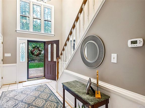 UNIQUE & STUNNING transitional w/ >3400 sq ft on .9 acre lot in MIDLOTHIAN! You'll feel welcomed upon entering the 2-story, light-flooded foyer w/custom stained glass windows. You'll be wowed by the beauty of the spacious family room - REFINISHED HARDWOOD floor, VAULTED ceiling, brick/gas FIREPLACE & fresh paint. FR opens to the large kitchen w/WHITE CABINETS, nice work ISLAND, generous EAT-IN area + awesome WALK-IN PANTRY! French doors open to DECK & large GAZEBO - tons of space to entertain outdoors, rain or shine! 1ST FLOOR PRIMARY SUITE has vaulted ceiling, new carpet, sitting area & French doors to deck. Special features include DUAL PRIMARY BATHS. 2 BIG WALK-IN CLOSETS + convenient laundry chute! Dining room = ideal OFFICE/WORK STATION. Upstairs, enjoy a book in the LOFT. 2 more nice BRs + Full bath up. Fantastic space in the FULL BASEMENT! Huge rec room w/NEW CARPET + brick FIREPLACE. Great MUDROOM area + huge LAUNDRY room+ great storage: 4 big closets (3 are cedar-lined) + pull-out storage cubbies. REAR-ENTRY 2-car GARAGE! Circular Aggregate drive + parking/patio. Private park-like woods-lined yard. Beautiful brick front + Hardiplank siding. Cul-de-sac & excellent schools.