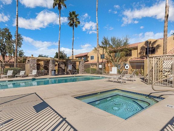 Amazing 1 bed 1 bath condo nestled at the base of South Mountain in South Phoenix! Adorned with new wood plank-like floors, updated paint, and elegant tiled kitchen and bathroom floors. The kitchen boasts granite counters, while carport parking, storage, and water/sewer/trash included add convenience. Relax in the community pool, savoring mountain views from the patio. With a prime location, this condo offers an enticing lifestyle, encompassing urban delights and natural wonders. Perfect rental for an investor or great lock and leave for out of towners. This won't last long!