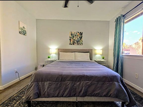 $100 rent credit for applicants with 700+ credit score. Fully furnished 890 sq. ft. SINGLE LEVEL condo, featuring TWO MASTER BEDROOM suites. (Available unfurnished for longer term leases at a different rate.) The home includes a well-equipped kitchen with essential supplies, a cozy living area, and all the comforts of home. Community amenities like a pool, hot tub, and free parking included. Conveniently located: 10 minutes to Phoenix Sky Harbor Airport 15 minutes to Downtown Phoenix Close to South Mountain Park and local golf courses Minimum 30-day stay. Water and sewer included. Inquire for availability and pricing. Owner pays for water, sewer and trash. Renter responsible for wifi and electricity.