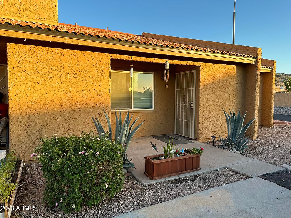 Come see this charming home with amazing views of South Mountain! This is an end unit with only one attached wall and is the perfect single level floor plan- with beautiful updated tile flooring throughout. The kitchen is fully equipped with lots of cabinets, ample counter space and the built-in appliances are included so this home is move-in ready!