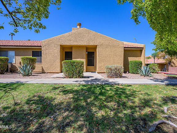 This unit has gone through a total refresh and is ready for its new owner to make it their own! Updated, light and bright! Single story end unit condo in Shadow Mountain Village. Fewer shared walls, no neighbors above and all on ground level. This home offers a split floor plan with 2 primary suites that each feature their own en suite bath, walk in closet and linen closet. The kitchen offers white cabinetry, Corian counter tops and stainless steel appliances. The living room in this unit is more spacious and functional compared to model matches as the fireplace has been removed. For storage it offers a coat closet, pantry/laundry room, additional inside storage room, and an outdoor storage area. Central location walking distance from South Mountain Park, and minutes from the I-10, Raven and Legacy Golf courses & AZ Mills Shopping Mall for shopping, dining and entertainment. Community amenities include two sparkling swimming pools, spa, and workout room.