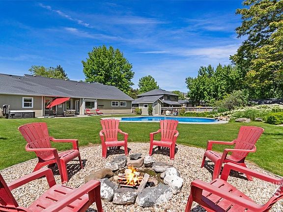 Fantastic home in the heart of SE Boise has it all! Generous 0.4 acre lot on canal irrigation has heated saltwater pool, hot tub, real wood fire pit, no rear neighbors and NO HOA. Separate driveway w/50-amp ext. outlet is perfect for your RV or boat while oversized 4 car garage w/EV charging outlet has room for all your toys. Interior is fresh and airy w/so many versatile spaces. Desirable main level master offers spacious walk-in closet and separate tub/shower and 3 addt'l beds and 1.5 bathrooms complete the functional layout. Option for multi-gen living w/upstairs feat. Large bedroom w/full bath and living room, doubling as a theater w/143" pull down screen. Addt'l gym and office space mean you never have to leave home! Only a mile to Bown Crossing, Harris Ranch restaurants and 0.3 miles to Boise River tubing and Greenbelt. Home is set back from Boise Ave. w/main driveway that fits 12 cars. Pool was just redone, newer HWH, light fixtures, paint and bathroom tile & large shed adds extra storage.