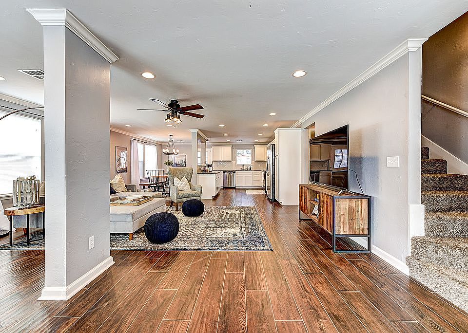 FULLY FURNISHED Farmhouse Renovation in Military Park! Tucked away on a quiet street near amenities, dining and highways. The moment you step inside you will instantly feel at home! Generous and inviting open layout with neutral colors and plenty of natural light. Sleek wood-like tile accent the living space which opens to a dining area and spacious kitchen. Stainless steel appliances, granite counters and subway tile back splash give this kitchen a fresh feel with plenty of counter and cabinet space. The en suite master bedroom is spacious and boasts a grand spa-like bath with a huge walk-in closet, double vanities and a dual head shower. Down the hall is a powder bath for guests and inside utility. The upstairs will lead you to an updated secondary bath adjacent to two bedrooms. The backyard offers an open patio perfect for entertaining. The home is completed by a functional basement offering extra storage. Don't miss a chance to make this darling home yours today!