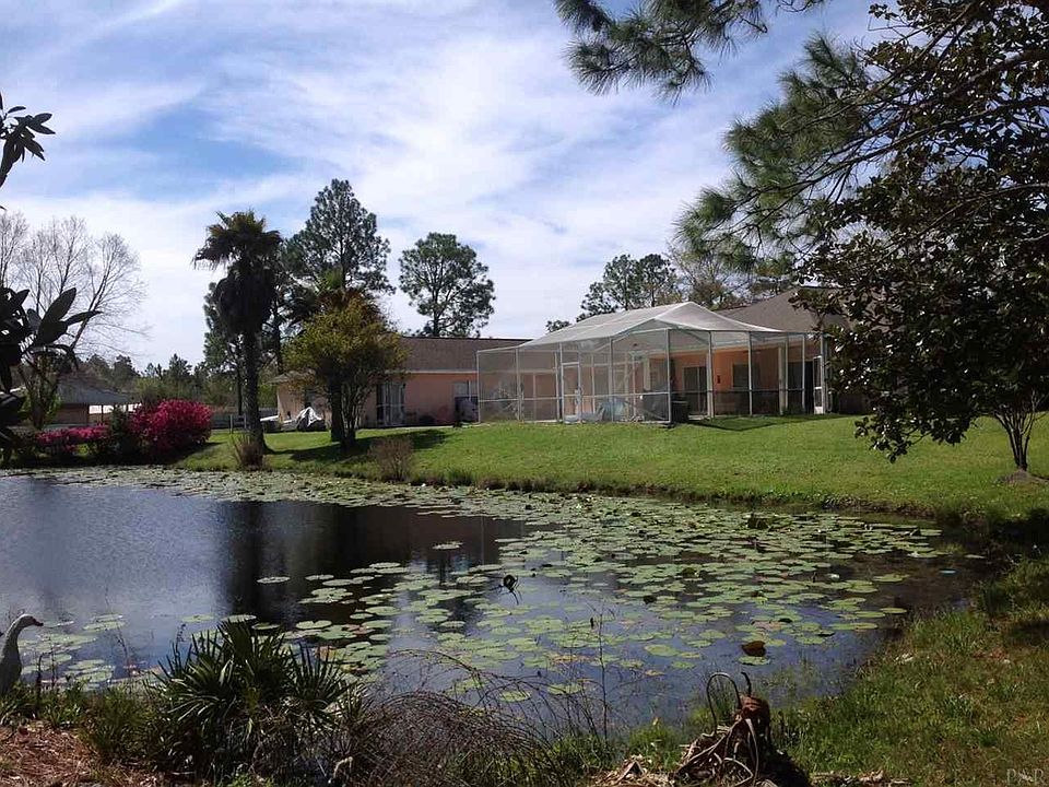 2 HOMES AND A 8 STALL HORSE BARN! BOARD YOUR OWN HORSES! Welcome home to this truly unique property, Just minutes from the water and the central location of Panama city, The main house boasts a spacious airy feeling with wonderful natural light and neutral colors. The split floor plan has well sized rooms and plenty of storage. The front of the home has a perfect view of the main arena and the barn, The back screened in pool overlooks the majestic pond and pastures where the horses are grazing! The detached guest house is the perfect size for visiting guests, Farm Hand or a Tenant for extra money. Also baby boomers take care of mom & dad right next door. The barn currently has 8 stalls, a wash rack/tacking station with heated water, tack room and feed room.