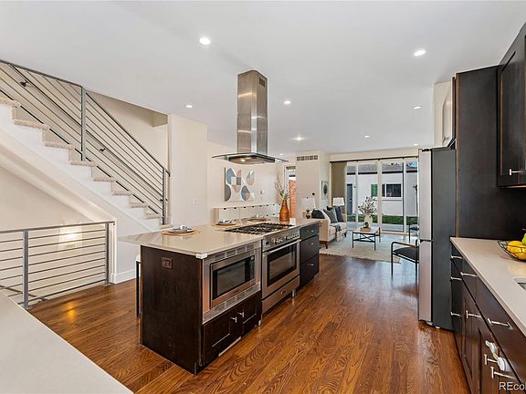 What better place to house hack than Denver's popular Lower Highlands area with its abundance of local shops and restaurants? Enjoy the quintessential urban living experience in this impeccably maintained 4 bed, 5 bath half duplex with a spacious short term rental space with its own separate entrance, living room, kitchenette, bedroom and bath (contact listing agent for rental income history). Smart home features throughout and numerous updates ensure convenience and modern living at its finest. The main level features everything you need for modern living and entertaining. There is a front dining room connected to the kitchen through a large butler’s pantry. The gourmet kitchen and living room effortlessly blend together. The kitchen features quartz countertops, stainless steel appliances, and a generously sized island with room for seating. The living space gets amazing sunlight and features a cozy gas fireplace. The sliding glass doors at the back of the house open onto the patio and allow for a seamless indoor-outdoor living experience. The second level features 3 bedrooms, two full baths and a laundry closet. The master suite includes a 5 piece ensuite bath, walk-in closet and private balcony. The additional two bedrooms are joined by a convenient jack and jill bathroom. The third level offers a versatile bonus space with a half bath and wet bar; it leads out to a deck with a water line hookup. From the third level deck, you take a spiral staircase up to the rooftop deck, which boasts magnificent views of both the city and mountains. Outside, the sunny back patio leads to a detached 2-car garage equipped with 2 EV chargers and lots of room for additional storage. Enjoy the fantastic location with an abundance of local shops and restaurants nearby, making this home the ultimate destination for the quintessential urban living experience. Move right in and start living your dream lifestyle today!