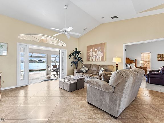 TURNKEY LAKEFRONT PARADISE – STRONG VACATION RENTAL! Welcome to this extraordinary Cape Coral retreat, where breathtaking water views greet you from nearly every room situated on a corner oversized lot. This exceptional lakefront gem offers luxury, comfort, and peace of mind—everything you need for full-time living, a seasonal escape, or a lucrative investment property. The moment you step through the front doors, your drawn to the sparkling pool and the serene beauty of Mohave Lake. This spacious home offers 4 BEDROOMS, 4 BATHROOMS, including 3 EN SUITE BEDROOMS and a full pool bath, providing both comfort and convenience for guests and residents alike. Two expansive living rooms deliver plenty of space for entertaining, formal dining, unwinding, or hosting large groups. The kitchen is a chef’s dream, featuring stainless steel appliances, abundant cabinetry, generous counter space, and a stylish wet bar—perfect for preparing meals or serving cocktails, laundry with a sink in residents. French doors open to an expansive lanai and pool area designed for true Florida outdoor living. Built-in Grilling area, the upgraded “picture window” pool cage frames panoramic lake views, creating an unforgettable backdrop for sunbathing, dining, or enjoying evening breezes, so much to do. Inside, natural light enhances the open layout, offering an airy, bright, and tranquil atmosphere throughout. This property is offered fully turnkey, allowing you to move right in or continue operating it as a successful vacation rental. RECENT UPDATES and NOTABLE FEATURES: Newer A/C unit (2017) Upgraded “picture window” pool cage (2018) Fully remodeled bathrooms (2019) All-tile flooring in bedrooms — NO carpet (2019) Updated outdoor grill area (2019) New roof (2020) Fresh interior & exterior paint (2021) Pool deck resurfaced with durable Penntek concrete flooring (2023) NO FLOOD INSURANCE REQUIRED, ASSESSMENTS PAID, Quiet dead-end street location. Don’t miss this rare opportunity!