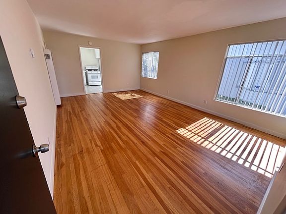 Large 2-bedroom 1-bath perched high above the street with big corner windows in the living room. Part of a 4-unit property, this unit is detached with no shared walls. Refinished original hardwood floors throughout, gorgeous vintage tile in bathroom, and washer/dryer hookups. (Tenant to provide their own stackable washer/dryer.) Unit includes a large paved patio and an extra deep, clicker-operated, 1-car garage. 93.5" wide by 81.5" high. Cats considered. Sorry, no dogs. No exceptions. Available for immediate move-in. Deposit equal to 1 month's rent. 1 year lease required. Tenant to pay gas, electric, cable, internet. Landlord pays water, sewer, trash, recycling. Renters insurance required. Non-smoking property.