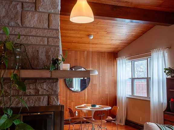 Check out this unique Mid Century Modern home in the desirable Indian Village. This 4 bedroom and 2.5 bath home with newer siding, window wrap and a large fenced in yard has been impeccably maintained. The entryway and living room boasts a floor to ceiling limestone fireplace, vaulted ceilings adorned with teak wood, and a suspended staircase crafted with solid oak treads from repurposed church pews. The large windows provide lots of light! Bonus mudroom coming in from the backyard. Enjoy the convenience of easy walking access to nearby elementary and middle schools, the Clyde Theatre, and Foster Park. Come see for yourself all the features this home has to offer.