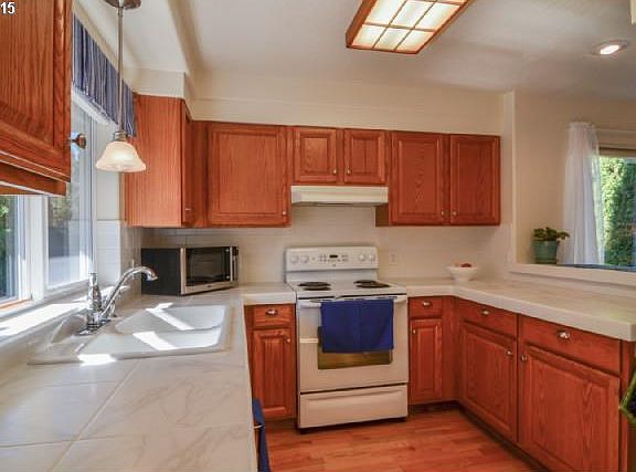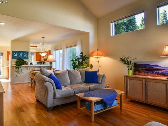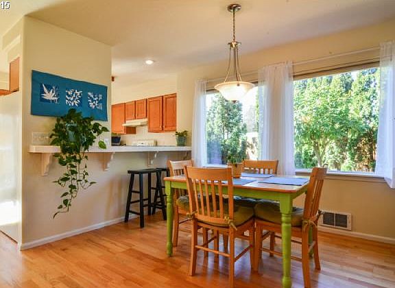Light & bright, super clean end unit with open floor plan, vaulted ceilings, tons of windows and wood, tile & carpeted floors. Open kitchen with eating bar, extensive cabinets and counter space. Dining room with beautiful view of newly fenced private side yard. Bedroom being used as office on main level. Full bath on both floors. Two bedrooms, laundry and small bonus room w/ skylight upstairs. This home is turnkey!