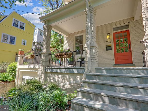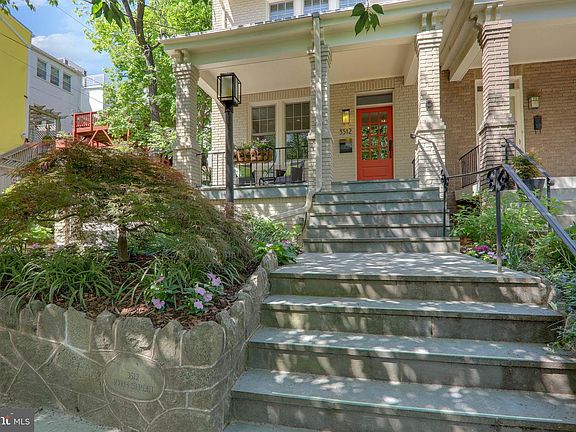 Welcome to 3512 30th Street NW in the heart of Cleveland Park! This classic Wardman semi-detached historic row house with its wraparound front porch is what you've been waiting for. The main house offers three bedrooms and two-and-a-half baths, including a beautiful master suite, with an additional one-bedroom one-bath in-law suite on the lower level. The spacious living room features a gas fireplace with marble mosaic-tile surround and tray ceiling. The generous dining room with tray ceiling is large enough to seat 12+ people for dinner. The stylish kitchen has recently installed stainless steel appliances and quartz countertops, heated tile floors, table area, windows on two sides, skylight, and sliding glass doors to the rear porch and fully fenced patio. The main level also has a classic entrance hall, powder room, custom panty with over 40 square feet, and a coat closet. Upstairs, the luxury primary bedroom suite offers a large bathroom with heated slate floors, porcelain slab shower with bench, double vanity, Robern cabinets, separate water closet, whirlpool tub, and linen closet. You'll also find an 8' x 11' closet/dressing area with custom cabinetry, including two towers of drawers and shoe shelves, sweater shelving, and built-in laundry hampers. This level additionally provides a second spacious bedroom with two closets, hall bath, and washer and dryer. The third floor has an additional bedroom with a bed that conveys. The lower level has been handsomely converted into a sophisticated in-law suite with a private entrance, open plan living room, dining area, and an updated kitchen with IceStone countertop, cooktop, dishwasher, microwave/convection oven, and refrigerator/freezer. The bedroom comes with two customized closets, bountiful built-in drawer storage, a built-in desk, and a printer cubby. The bathroom includes a glass stall shower, heated floor, and private washer and dryer. The flat-panel HDTV conveys (can be used in either living room or bedroom). There is a storage area between the house and in-law suite with additional full-sized refrigerator and freezer. From here, access the GARAGE with automatic door and tandem driveway parking. Other special features: High-efficiency Renewal by Andersen windows; hardwood floors; central A/C; skylights; tray ceilings in formal rooms. Location, location, location - all this just mere minutes to Metro, shopping, and dining!