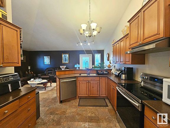 Beautiful Bungalow backing onto green space reserve in a fantastic location! This 1656sq. Ft. bungalow has stunning vaulted ceilings on the main floor with a unique and practical layout. The living room will grab your attention with the large bow window filling the room with natural light. The kitchen features alder cabinets, breakfast bar and large pantry. Leading into the cozy family room, which shares a double-sided fireplace with the dining area and access to large wood deck. Completing the main floor is the primary bedroom with 3 piece ensuite and walk in closet, two more bedrooms, a 4-piece bath and main floor laundry! The basement is well lit, with two additional bedrooms, 3-piece bath and a huge open space for a recreation area. The home is located in a quiet cul-de-sac with no thru road offering much privacy. To finish it off, the home has a double attached garage and an RV parking pad!