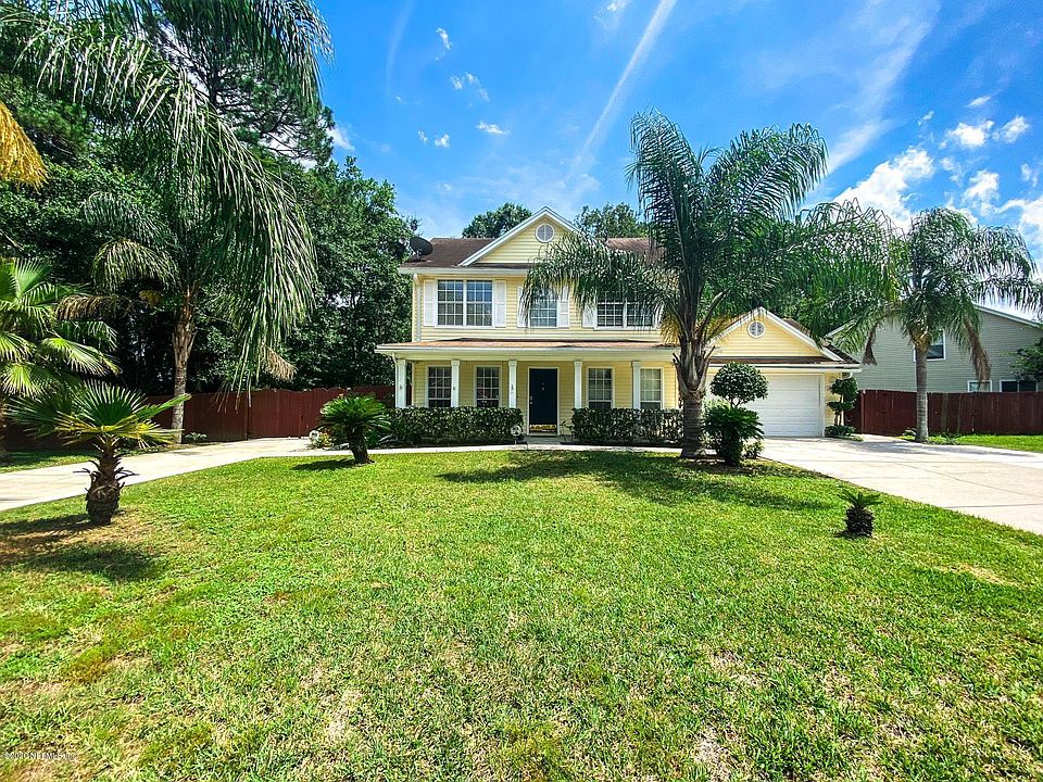 Cute two-story ranch home on an amazing lot! The lot is by far on one of the biggest in the neighborhood at over 1 acre and includes your very own pond! Great landscaping with numerous palm trees, bushes, and even a banana and lime tree. Also includes two driveways with one extending into the backyard for excellent boat or RV parking. Cozy inside with hard surface flooring downstairs and carpeted bedrooms upstairs. Carpet just recently cleaned. Living room features a gas fireplace. Brand new AC unit. New roof to be installed before closing. Come see this unique house and lot for this neighborhood before it's too late!