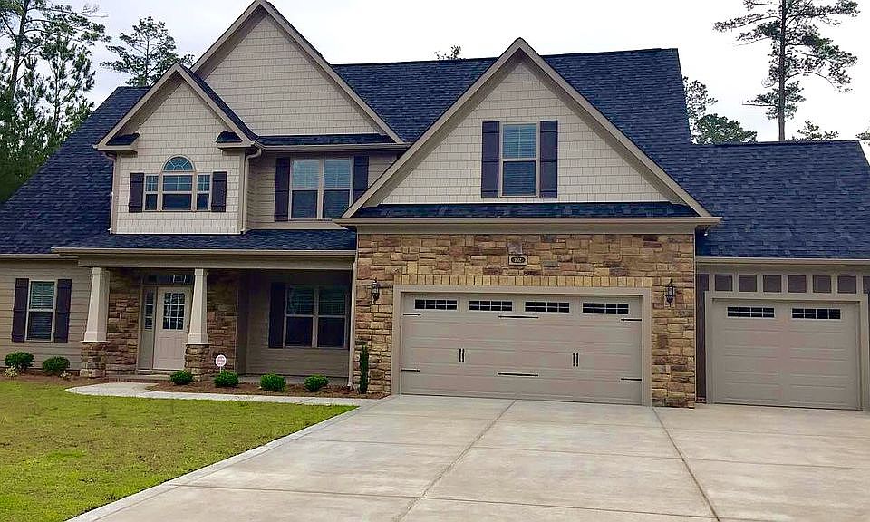 GATES FOUR $410,000 5BR/4BA. Located in the Gated/Guarded Gates Four golf community and much in demand Jack Britt school district, this stunning craftsman design w/stone veneer accents has A+ curb appeal. Wide plank, hardwood, carpet & tile flooring. Wide foyer opens to Greatroom w/creative wall accents and FP. Dining Room w/coffered ceiling is stunning. Very spacious downstairs Master Suite with jetted tub, double vanities, separate shower and walk in closet is a lovely getaway space. Kitchen has granite, stainless range w/double oven. Refrigerator. Lg Laundry Room. Downstairs guest room w/bath. Three bedrooms upstairs are large & two baths make for easy shared living space. Large Bonus plus office or walk-in closet. Front porch sets welcoming tone. Back screened porch overlooks a large, flat yard bordered by a wooded lot behind. Patio w/stone trim, fire pit and grill area. Gas grill remains for your pleasure. Irrigation front & back. Triple Garage. Club membership optional.(3512C)