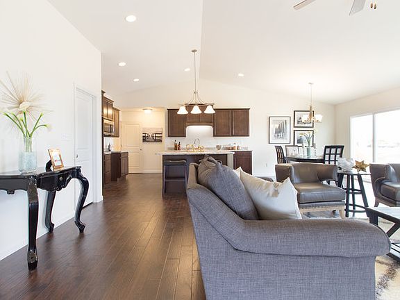 Vaulted Ceiling in the Foyer, Great Room, Kitchen & Breakfast RoomUpgraded Laminate Flooring in the Foyer, Great Room, Kitchen, Breakfast room, Walk in Pantry & Hallway to bedrooms.Gas Fireplace in Great RoomKitchen Island with overhang42" Kitchen Staggered Wall Cabinets with Crown MoldingBlack GE appliances including a Smooth?top, Self Cleaning Range, Microwave & Dishwasher and Space Saver Icemaker WaterlineWalk in shower in master bathDouble Bowl Vanity in master bath with drawer stacks Can Lighting in Kitchen and upgraded lighting throughoutWired and braced for ceiling fans in great room and 3 bedrooms6 Panel Interior Doors with Brushed Nickel HardwareBeautiful Glass Front Door & SidelightEgress Window in lower levelCustom interior paint throughoutUpgraded exterior color package20' x 12' Concrete PatioFully Sodded YardCoach LightsArchitectural Shingles , enclosed soffits and fascia, and much more.....