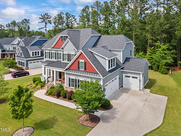 Welcome to Luxury Living in the highly sought-after Jordan Pointe community! Quiet CUL-DE-SAC HOMESITE featuring the immaculate Pinehurst Model by NV Homes. This home offers elegance & relaxation! The inviting, open floor plan includes 5 Bedrooms, 4.5 Baths & is perfect for entertaining! Enjoy views of the private, wooded back yard on the screened in porch. Highlights & Builder Upgrades include: 1ST FLOOR GUEST SUITE, 3/4'' OAK HARDWOODS THROUGHOUT, 10ft ceilings first floor, 9ft second floor. Venetian Blinds in Front of Home, 2 KITCHEN ISLANDS w/extensive counter space, 2 Built-in Mini Fridges, Butler's Pantry & Launch Zone, Booster Yagi Antenna for Verizon, 4 Ft Rear Extension to Home, Morning Room & 3 CAR GARAGE (total) w/SINK & Noritz Tankless Water Heater!! Both Garages are Fully Insulated. HUGE 2nd Floor Owner's Suite w/ Sitting Area, Room Darkening Shades, His & Hers Walk-In Closets, Soaking Tub, Double Vanities & Linen Closet!! Community Amenities include a pool with splash pad, cabana, clubhouse, playground, dog park, basketball court, sand volleyball court, picnic/grilling area, community fire pit & several paved walking trails throughout the neighborhood. Convenient to Apex, Holly Springs, & NC-540 access to Raleigh/Durham/Triangle Area with shopping, dining, craft breweries, excellent schools, & RDU Airport - Great Environment for Remote Work for Professionals. Lot size is .39 Acres & Property Line extends 42' into the rear woods!! Note: Last 3 Interior Photos contain Virtual Staging.