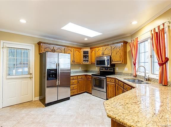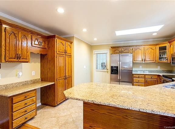 Ranch home on over 1 acres lot just minutes from downtown Waxhaw. Walk/bike to downtown & enjoy shopping, restaurants, ice cream, coffee shops, skate park and more. Small cul-de-sac community of homes all on over an acre lots. You'll love the updated kitchen with granite countertops, stainless steel appliances, tile flooring, dining area, breakfast bar, built-in desk area and built-in pantry with roll out drawers. The family room has hardwood floors, cathedral ceiling and fireplace w/ gas logs. Relax in the owner suite overlooking the back yard w/ direct access to the deck, vanity w/ granite countertops & walk-in closet. Bedrooms 2 and 3 both access full bath w/ tile flooring and granite countertop. Separate laundry room has gas dryer included w/ the home. Also features cozy front porch, huge deck spanning the entire rear of the house, security system w/ 5 outdoor cameras, side-load garage, storage building, attic storage & more! Lot next door available on 1.14 acres for $59,000.