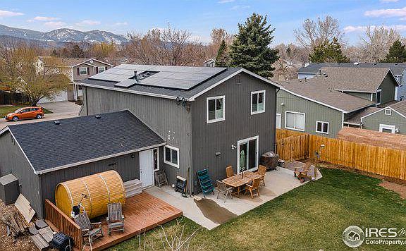 Immaculate condition with fresh interior pain, updated bathrooms throughout, fresh carpet and modern updated kitchen with granite counters. Four bedrooms up with an office area in the loft/flex space. Great layout with easy access to the back yard patio/deck right off of the kitchen for entertaining this spring/summer. Sauna included. Sunny backyard with elevated garden beds and a custom high-end sauna. No HOA allows for RV/Boat parking. "Seller Owned" PV 7KW Solar Array that will pass on to the new owner. Expect to be putting power back into the grid on most days. This is a great opportunity in a perfect Fort Collins location. Welcome Home.