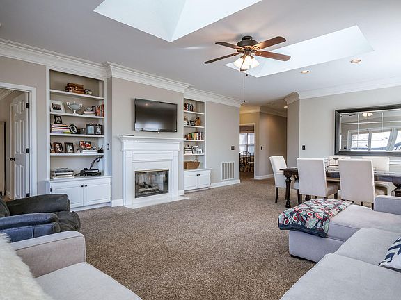 Immaculate 3 bed/3 bath condo in Hurstbourne Ridge! This home features high end finishes and large bedrooms as well as a spacious balcony just off of the living room. Large glass doors, windows, and skylights allow an abundance of natural light. Glass french doors lead to the dining and kitchen area which boasts hardwood plank flooring. The kitchen is open to the dining area and has a skylight as well as stainless steel appliances. The dining area has a fireplace which is flanked by built in shelves creating a cozy environment. In the living room you will find another fireplace with built ins, crown molding, and a second dining area. The master bedroom features yet another fireplace with built ins, tray ceiling, and large windows. The en suite master bath has a jetted tub, 2 separate vanities, and a walk in shower. The additional bedrooms are very spacious allowing plenty of room for guests or family. There is an attached two car garage on the lower level for convenience. Community amenities include a clubhouse, fitness room, pets (per restrictions), pool, and tennis courts. The HOA fee includes water, trash, master insurance, snow removal, exterior maintenance, and grounds keeping. This home will not last long, schedule a private showing today!