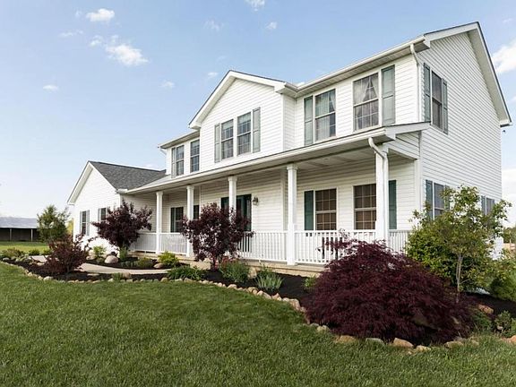 A two story, 4 bedroom home on almost 3 acres with a 360 degree ''wow'' view. Large front porch. 9' ceilings. Big foyer open to the second floor. Huge mud/laundry room with tons of storage. Four spacious bedrooms. A new heat pump and air conditioner coil installed in 2016. Remodeled shower 2017. New carpet on both sets of stairs, hallway, and bedrooms. Full basement. Perfect for gatherings and a fire out back, this home is an easy and direct 10 minutes to Sunbury and 15 minutes to New Albany. Includes a three sided concrete shed that can fit a boat or camper or both.