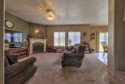 Spacious 2460sf, 4 bed, 2.5 bath, 3 Car Garage on .23 acres. Enjoy the large kitchen w/long breakfast bar that is open to the Eating Area & Family Room w/gas fireplace. Separate Living & Family Rooms make it convenient to utilize one space as an office, if desired. Spacious master bath w/separate shower-tub & dual vanities. Large fully fenced yard w/sprinklers & storage shed. Walking distance to community park & pool. Also conveniently close to Settlers Park, shopping, schools, & the Village in Meridian!