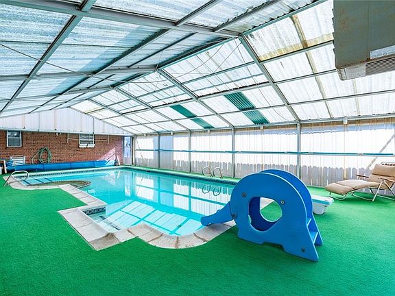 This home in OKC is awaiting its new owners! Centralized around many shopping outlets, restaurants, and entertainment giving you several options to choose from. Step inside and see for yourself how much space this home offers. Living room features several windows to allow natural light to come flooding in, and very well maintained carpet. Second living room room includes a brick fireplace, and builtin desk. Kitchen showcases breakfast bar, tons of kitchen storage space, and is open to living room by way of serving hatch. Primary bedroom includes 2 separate closets, and private en-suite. Backyard features indoor pool and seating area, making this place perfect for hosting guests. Come check out your future home!