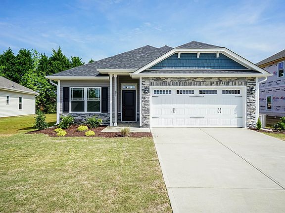 MOVE IN READY HOME!! Located just 3 miles from Downtown Sanford, 45 minutes from Fort Liberty, and under an hour from RTP, this beautiful 1522sq.ft. Ranch offers a large Family Room with a Gas Fireplace that's perfect to host your guests. The Kitchen has upgraded Granite Countertops, a Gourmet Kitchen, Stainless Steel appliances, a large Island with the Kitchen Sink in it, and upgraded cabinets. You will find plenty of space to feed everyone in the Formal Dining Room, complete with Tray Ceilings, Crown Molding and Wainscoting, in addition to a breakfast area off the Kitchen/Family Room. Get cozy in the spacious Master Bedroom with Tray Ceilings complete with Crown Molding. The Master Bathroom features a Double Vanity and a Tile Shower in lieu of a soaking tub. A covered Lanai (Patio) greets you when you step out into your backyard. Other upgrades in this home include upgraded laminate flooring in main living areas, stone facade on the front of the home, and top panel windows on the garage door. Close proximity to schools, shopping and entertainment options makes this an opportunity you don't want to miss! Schedule a showing with us today before it's gone. **Note. Photos are a representation of a home with the same floor plan that is already built.