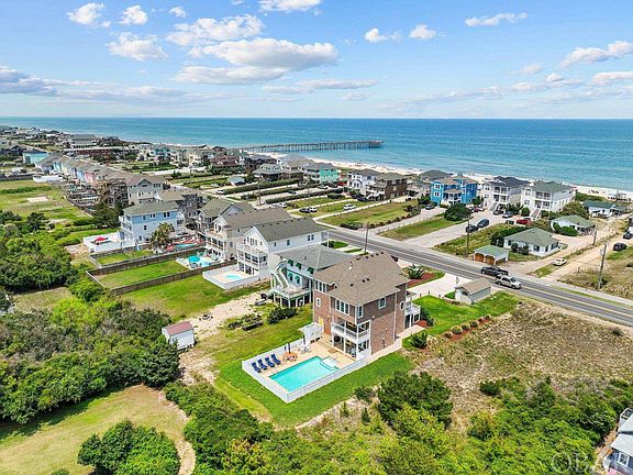Nags Head Semi Oceanfront! Ocean views with direct beach access! Custom built home, never rented and in immaculate condition! Private pool and elevator! This is not your average beach house. Every detail inside and out was purposely designed to be as low maintenance as possible, including vinyl railings, composite stairs and trim around all decks, geothermal heat system, vinyl pool fence, CertainTeed vinyl shake siding, bamboo flooring, granite countertops, and more. The original owner went above and beyond with quality and the home is built to the highest of standards. A full list of construction features is available but some those features are upgraded concrete everywhere, deeper pilings for structural stability, reinforced concrete pool, upgraded roofing and much much more! The reverse floor plan takes maximum advantage of the amazing ocean views. The top level of the home boasts an open concept living area, granite kitchen, half bath, ensuite bedroom and access to an incredible covered porch overlooking the Atlantic Ocean. The mid level has an ensuite bedroom, an additional well appointed bedroom, full bathroom, laundry area and a den/office area that is currently being used as a 5th bedroom. The ground level has a large recreation room, an additional bedroom and bathroom, access to the finished garage and the pool area out back. There are too many features to list but a few are stainless steel appliances, bead board wainscoting, granite vanities in all bathrooms, elevator with glass door, large private concrete pool, attached garage, additional detached garage/storage building, extra large 15,000 square foot homesite with 75 feet of road frontage, recreation room and so much more. Since this was originally built as a primary home, bedrooms are large with tons of storage and closet space, a rarity in most beach homes. Located in an X flood zone, the home is built very high. Ground level elevation is significant! The location is absolutely perfect. Situated in one of the best areas of Nags Head it is close to Jockey's Ridge, Nags Head Fishing Pier and conveniently located to some of the best restaurants, shopping, grocery stores and entertainment in the area. Another great feature is that it is close to two beach accesses, one of which does not have stairs to climb to get over the dune which makes getting to the beach even easier. This home would be a great rental property but it would also make for a fantastic 2nd home or primary residence. It is a MUST SEE! Don't wait!