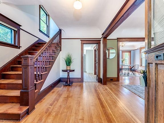 Timeless Foursquare located in the desirable Brooklyn neighborhood! This impeccably maintained home with a perfect blend of modern convenience with classic charm. This home features 4 bedrooms, updated 2.5 bathrooms, an updated kitchen with stainless-steel appliances, beautiful hardwoods, endless storage in the basement and a spacious backyard perfect for entertaining and lets not overlook the possibilities with the high ceilings and separate entrance in the lower level that could be finished into an rentable space. Other updates include new roof, exterior paint, plumbing, electrical, new AC, nearly all new windows and garden irrigation system. Easy commute to Downtown and the numerous hotspots around SE Portland. Don't miss the chance to own this cohesive blend of comfort, style, and outdoor bliss!