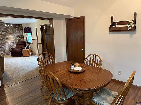 Shawnee Heights Ranch home with 3 bed, 2 baths, 2 car garage, formal living, main floor family room with fireplace and basement rec room! Many newer items including: kitchen, some flooring, windows, sliding door & more. Amazing walk-in pantry!!! Stove, Refrigerator, dishwasher, microwave, washer & dryer all stay. Huge tiered fenced yard with storage shed. Extra concrete pad for additional parking. Don't miss out on this lovely home! 2022-06-04