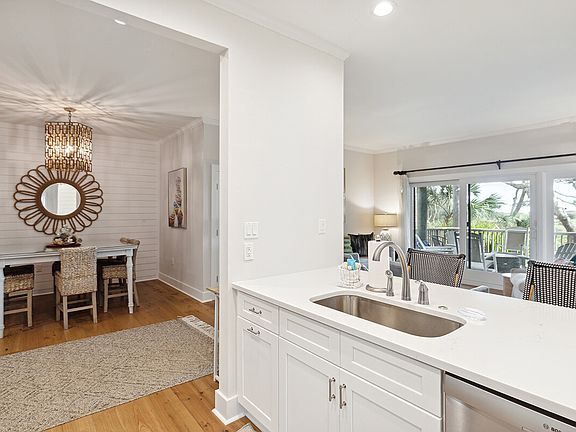 Looking out across the dunes to Kiawah's beautiful ten-mile beach, this three-bedroom, furnished villa is conveniently located in Seascape Villas near East Beach Village. Residents are in close proximity to the Sandcastle the property owner's beachfront recreation center, as well as shopping and dining. An exterior deck, a screened porch, and being just steps from the sandy white beaches of the Atlantic makes this coastal-themed villa the ideal beachfront retreat. Inside, the open living room boasts shiplap walls, hardwood floors, and sliding glass doors leading to the exterior deck. The fully appointed kitchen has counter seating, a custom backsplash, stainless appliances, and plenty of cabinet space. Adjacent is a cozy breakfast nook with glass doors that lead to the screened porch. The kitchen also faces the open dining room which creates unimpeded flow for entertaining. The lovely primary suite has a window nook ideal for relaxing, a large closet space, an en suite with dual vanities and granite counters, a custom-tiled walk-in shower, and a separate WC. The two guest rooms have tile floors, windows with plantation shutters, full baths, and plenty of storage. Offered fully furnished, this is a move-in-ready island retreat. All information deemed reliable but not guaranteed and should be independently verified.