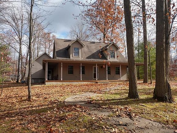 Very spacious three bedroom, 3.5 bath with finished walkout basement. Hardwood floors throughout the home. Carpet in walkout basement is two years old and freshly painted. Basement has a custom bar with sink, bar stools and TV. This home is ready for a family to enjoy the spacious basement with pool table for those family gathering. Mechanic room in basement with owned water softener and storage. 2 1/2 attached car garage. Home has a nice wrap around covered deck to enjoy those summer days. Outdoor hot tub stays. Private road $150-$250 yearly dues for road maintenance. This home was not affected by damn failure. The owner purchased the home in 2007 and totally finished the basement including making it a walkout.