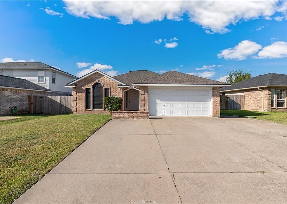 Come check out this 4 bedroom 2 bath home with a 2 car garage and privacy-fenced back yard. Located in the south College Station neighborhood of Sun Meadows just a few minutes to the neighborhood park, and short drive to restaurants, shopping, medical centers, and entertainment venues. Pull up to the brick front home with a front-entry 2 car garage and ornate windows, step into the living room that offers large windows overlooking the backyard. The kitchen and dining room offer a partially open concept living area and fully equipped with an eating bar, white appliances, and a pantry. The bedrooms are large, well-lit, and decked with carpet. Washer and dryer are on site and provided by the owner. The backyard is spacious and fully fenced. Schedule your tour today!