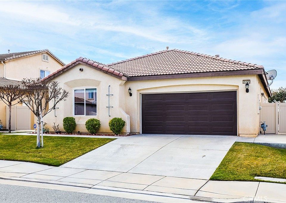 Welcome to 35125 Trevino Trail! This rare charming Single-Story Mediterranean style home is tucked in the Hills of the Trevino PGA Golf Course in a beautiful quiet neighborhood! Everything about this lovely home is Spacious and designed for Comfortable Living! Very efficient and well laid-out floorplan. Open, airy and lots of natural light. It has 3 Bedrooms and 2 Full Bathrooms with over 2200 Square Feet! As you walk in, you enter the large living room with vaulted ceilings and recessed lighting. The spacious white gourmet kitchen with double stainless-steel sink, granite countertops and plenty of cupboard space, is open to the large dining/breakfast area and the family room with a fireplace. The roomy Master bedroom has a very large walk-in closet, which you will love! All bedrooms are very good-sized! The Master bathroom has double-sinks with separate shower and soak-tub. The Second bathroom is also roomy and has double-sinks with a shower-tub. There is a separate inside-laundry room for a full-size washer and dryer with linen cabinets. The immaculately well-kept wraparound backyard with views, is private and perfect for relaxation and BBQ's. There is direct access to the 2-car garage. Also has a full driveway and plenty of available street parking. Close to Shopping, Dining, and Elementary, Middle and High schools. Easy access to 10 freeway. This home is priced to sell fast. Community amenities: Pool, Spa, Clubhouse and Playground . . . All information is deemed reliable, buyers and their agent (s) to verify condition and square footage.