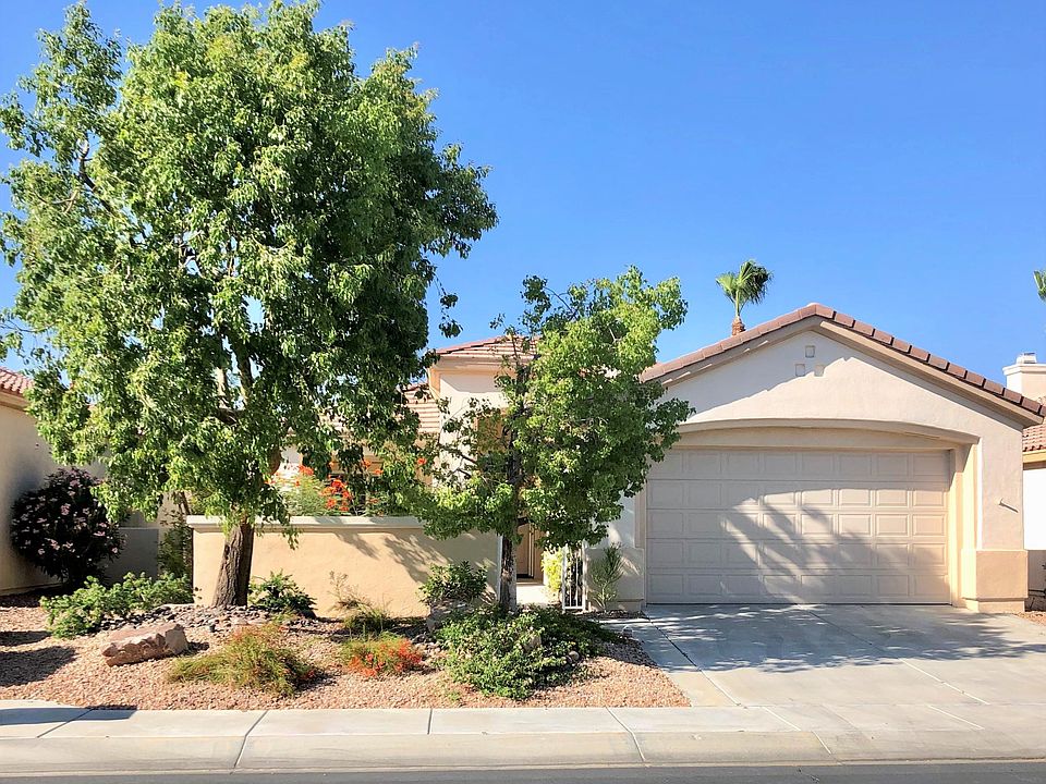 Cleanest home in Palm Desert! Be the first to rent this immaculate single story. Move in ready, available now, looking for a long term renter. Located in beautiful "Sun City" a 55+ community (only one person needs to be 55+). This comfortable air conditioned Cayman floor plan home offers 2 bedrooms, 2 bathrooms + a den/office/extra bedroom. The kitchen and bathroom have beautiful upgraded cabinetry and the laundry room is equipped with a washer and dryer. The back garden features fruit trees, a private covered patio and a ceiling fan. This Palm Desert neighborhood has a grand gated entrance that is maned by security personnel, wide open streets, well maintained gardens, lighted addresses that offer emergency notification if needed, spacious community clubhouses, Olympic size swimming pools, indoor gyms with walking tracks, lush golf course with outdoor walking trails, friendly community restaurants and more. Water, Trash and Gardening services provided by the owner. The home is unfurnished except a King Adjustable Bed in the master, washer, dryer and all major kitchen appliances. No smoking. $25.00 credit check per person. Call/Text or email to view today.