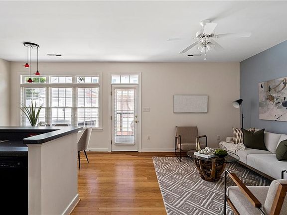 4-bedroom, 4-full bath Brick front townhome. Kitchen has black appliances, fridge, stove, dishwasher and microwave. Hardwood floors downstairs and vinyl plank flooring upstairs. Central air and gas heat. Gas hot water tank. Private Fenced Rear Yard with Shed. Association includes: common area, landscaping, streetlights, Water View.