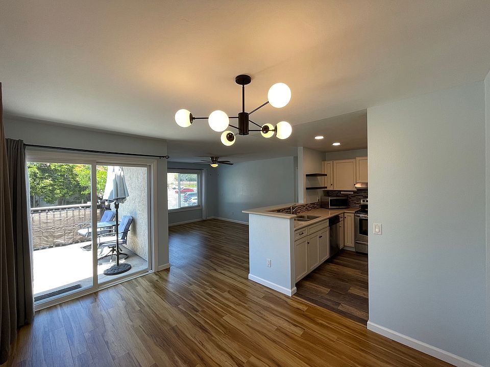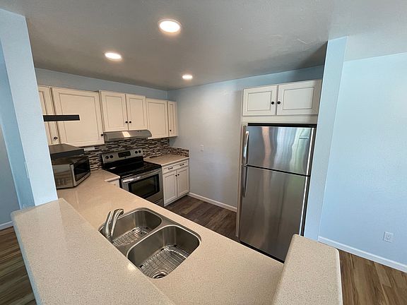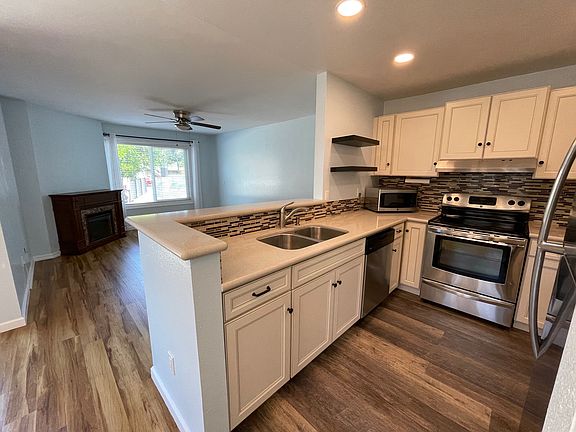 BEAUTIFUL LA COSTA ONE BEDROOM CONDO -- Upstairs, corner unit with no one above or below! Complete remodel including updated kitchen with appliances, counters, cabinets, and updated flooring, bathroom, & Milgard double-pane windows + slider. This west-facing condo is light & bright and has great breezes that flow onto the balcony to catch the sunsets. 1 car attached garage with additional storage space + 1 assigned parking spot. Newer in-unit washer & dryer. AC units + wall heaters. Quiet, gated community with pool, hot tub, sauna, & gym and just across the street to restaurants, shopping, coffee, & grocery stores! This one truly has it all! Water & trash included. Renter is responsible for electricity (no gas on property). No smoking or vaping of any kind. Small dogs (up to 40 pounds) permitted with pet security deposit (no cats).