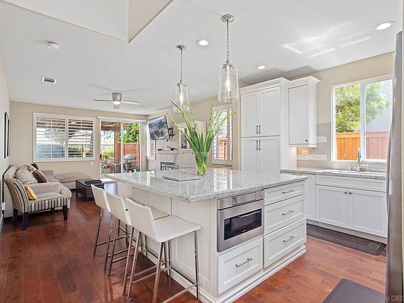 Nestled on a private cul-de-sac in one of the best school districts! This meticulously maintained 2-story home features 3 bedrooms upstairs, with a primary suite on the main floor. The interior boasts high ceilings with an abundance of natural light throughout. The well-appointed kitchen offers stainless steel appliances, granite countertops, elegant white cabinetry, and an island with breakfast bar seating. The family room, adjacent to the kitchen, creates a seamless flow with an open floorplan. Outside you will find a large yard with a covered patio and built-in fire pit providing the perfect setting for entertaining or relaxing. The community offers an array of amenities, including a pickleball court, basketball court, playground, picnic area, pool and clubhouse, ensuring recreational options for all ages. With NO MELLO ROOS and a very low HOA fee, you can enjoy these fantastic facilities with ease. This home is move-in ready - don't miss out on this exceptional opportunity!